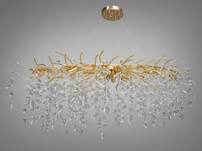 Вражаюча підвісна кришталева люстра витягнутої форми, 12 ламп, золото