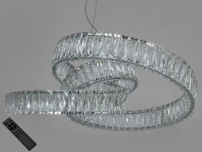 Преміальна хромована підвісна кришталева лед люстра з пультом, 80W