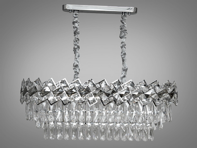Люстра підвісна кришталева овальна Diasha 2018-800X300CH хром 8 ламп для обідньої зони
