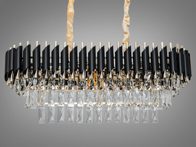Велика підвісна кришталева світлодіодна люстра в зал, 195 Вт, чорна