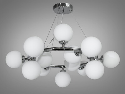 Люстра в стилі Лофт - "Бульбашки" на 20 плафонів-куль, хром