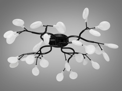 Дизайнерська стельова люстра в кімнату "Світлячок", 28 ламп, чорна