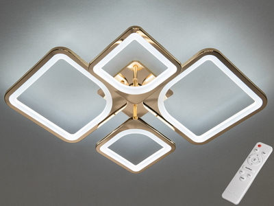 Багатофункціональна світлодіодна люстра на ІЧ пульті, 72 Вт, золото