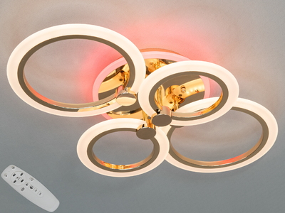 Світлодіодна люстра з пультом, диммером, кольоровою підсвіткою, золото