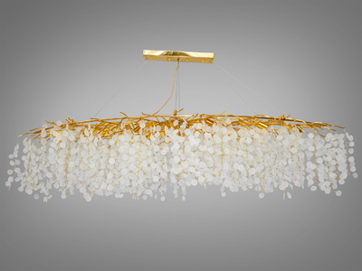 Вражаюча підвісна кришталева люстра витягнутої форми, 12 ламп, золото
