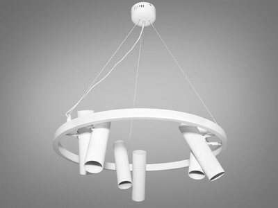 Візуально приваблива підвісна люстра на тросах, 6 ламп, біла люстра
