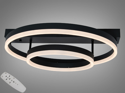 Стельова LED люстра чорна 60W пульт димер 2 кільця