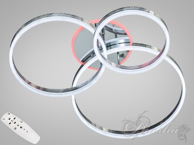 Стельова світлодіодна люстра кільцями з пультом, димером, 120 Вт, хром
