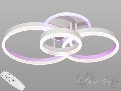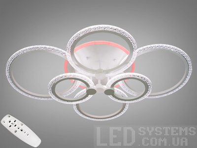 Біла LED люстра з кільцями-плафонами, кольоровою підсвіткою, 90W