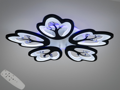 Стельова LED люстра чорна 5 пелюсток пульт димер