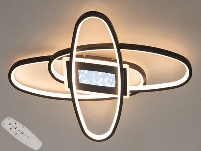 Сучасна стельова світлодіодна люстра з пультом, 125 Вт, чорна