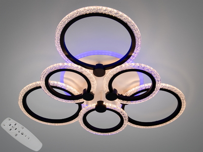 Люстра стельова LED 6 кілець чорна 80Вт з пультом