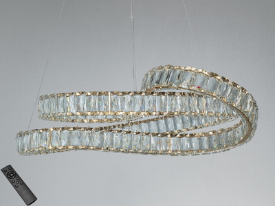 є відео оглядПідвісна кришталева LED люстра золото 43Вт 2 кільця
