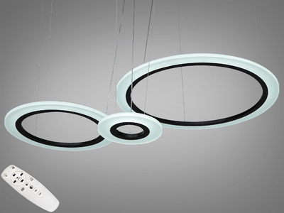є відео оглядПідвісна LED люстра 3 кільця чорна 115Вт пульт