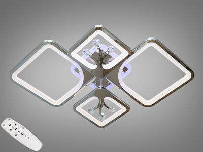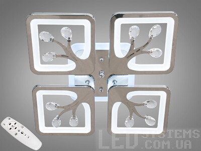 Стельова LED люстра хром 85W пульт димер 4 модулі