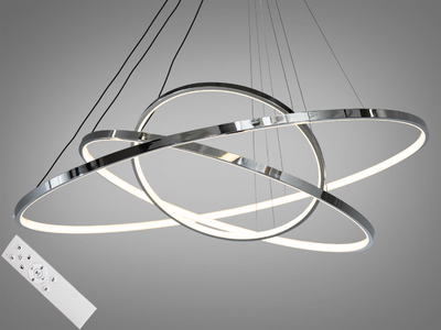 Футуристична LED люстра з пультом, диммером, 150 Вт, хром