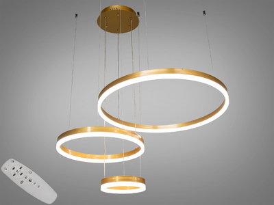 Стельова LED люстра Diasha золото 85 Вт 4675 лм пульт дімер 3 кільця