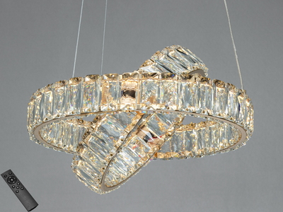 Підвісна LED люстра золото кришталь 68 Вт пульт