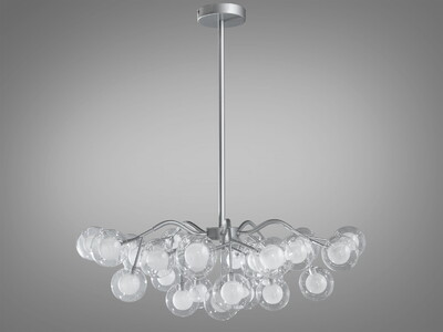 Футуристична люстра в дитячу "Світлячок", 30 ламп, хром сатин