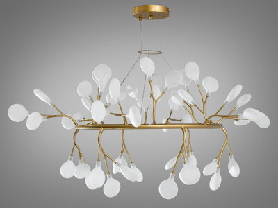 Якісна підвісна люстра для вітальні "Світлячок", 54 лампи, золото сатин