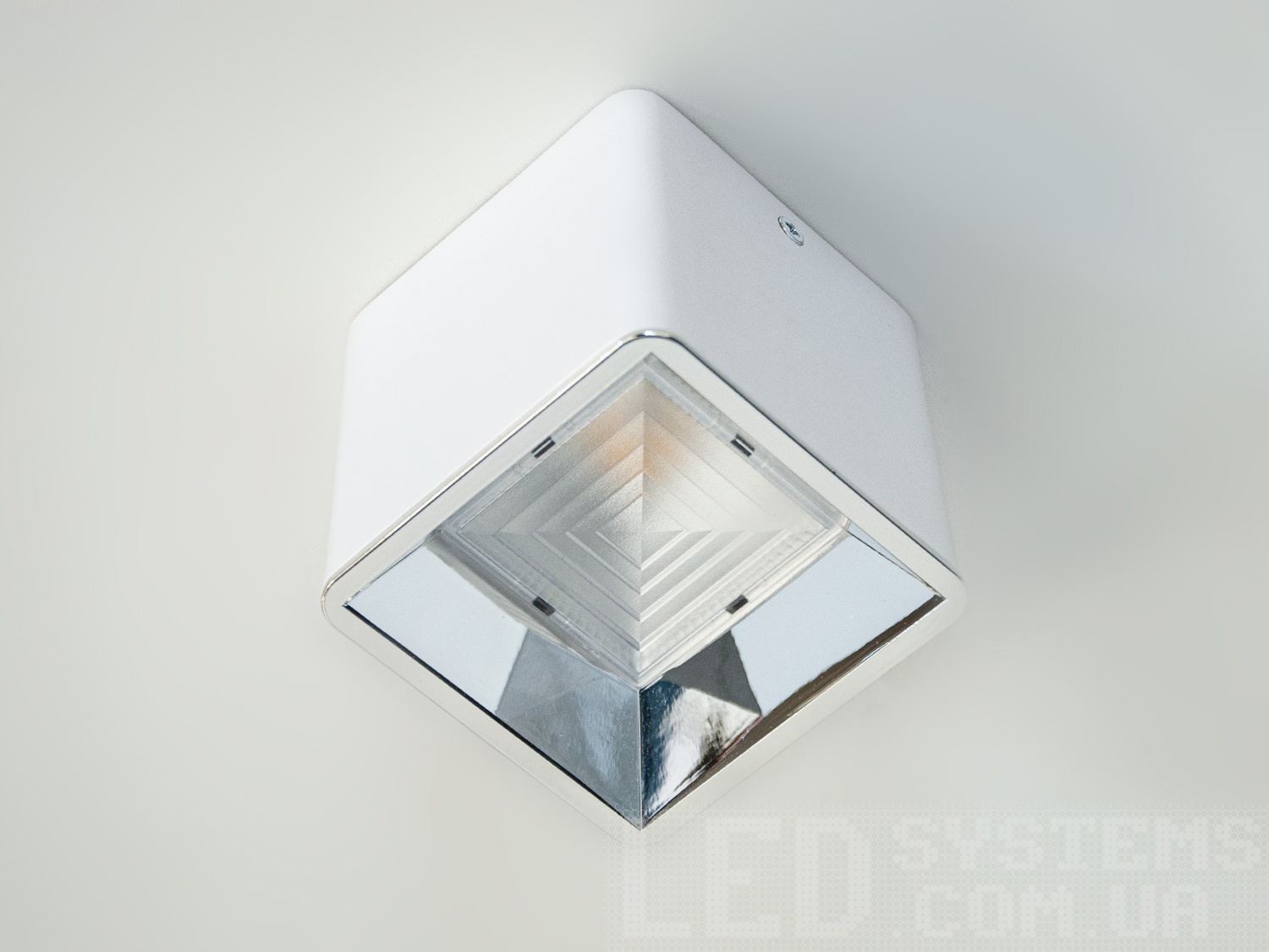 Універсальність дизайну: Кубічна форма з заокругленими краями і біле забарвлення ззовні з хромове всередині робить світильник дуже універсальним. Він може ідеально вписуватися в сучасні інтер'єри з мінімалістичним або навіть футуристичним дизайном, а також гармонійно виглядати в приміщеннях, оформлених у стилі хай-тек, скандинавському або лофт.