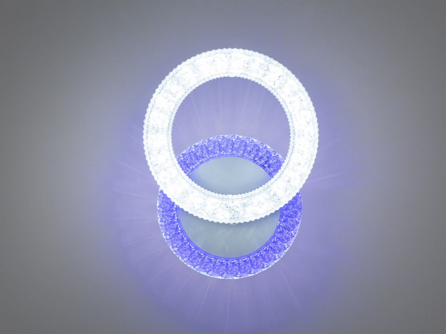 На фотографії представлений надзвичайно стильний та сучасний світлодіодний настінний світильник, який миттєво привертає увагу своїм футуристичним дизайном. Його конструкція складається з двох перехресно розташованих кілець – верхнє сяє яскравим білим світлом, а нижнє світиться ніжним червоним підсвічуванням. Поверхня обох кілець виконана з литого акрилу з витонченими рифленнями, які створюють об'ємний візерунок, нагадуючи інеєві кристали або морозні візерунки на вікні. Текстура розсіювача не лише прикрашає світильник, а й надає світлу м'якість та рівномірність. Хромована основа підкреслює сучасність виробу, додаючи блиску та відчуття технологічної витонченості. Компактний розмір і легкість конструкції роблять цей led світильник настінний ідеальним для будь-яких приміщень – від дитячої кімнати до стильного холу. Теплі й холодні відтінки світла гармонійно поєднуються, дозволяючи створити потрібну атмосферу за допомогою звичайного вимикача.