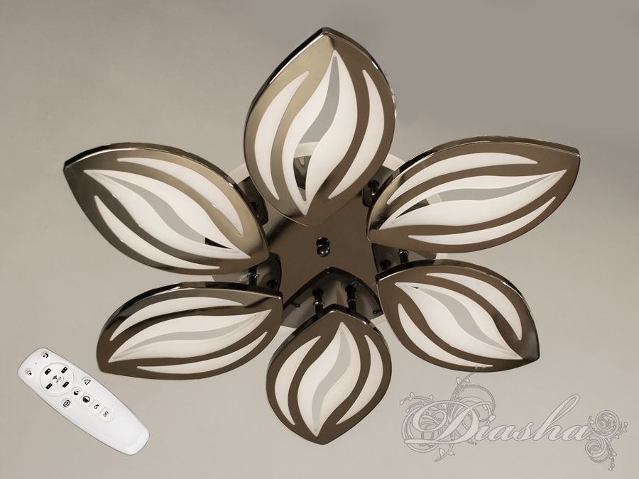Стельова люстра з пультом, димером і LED підсвічуванням, 165W, хром