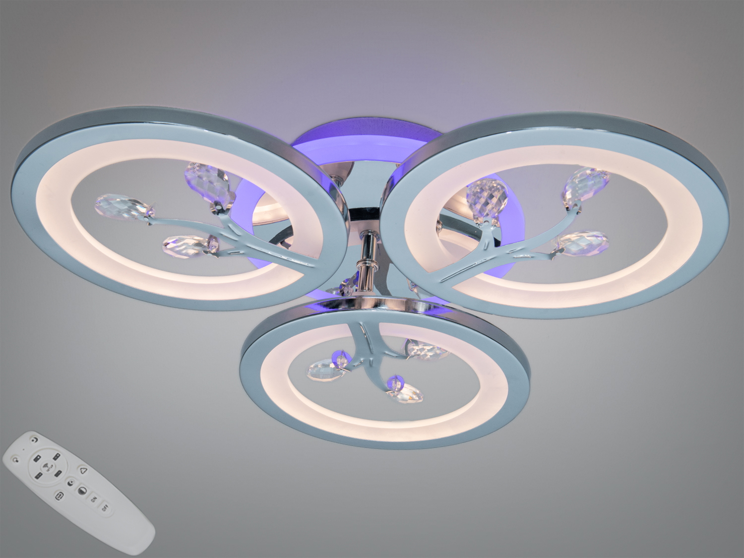 Стельова LED люстра 3 кільця хром 50 Вт пульт 9 м²