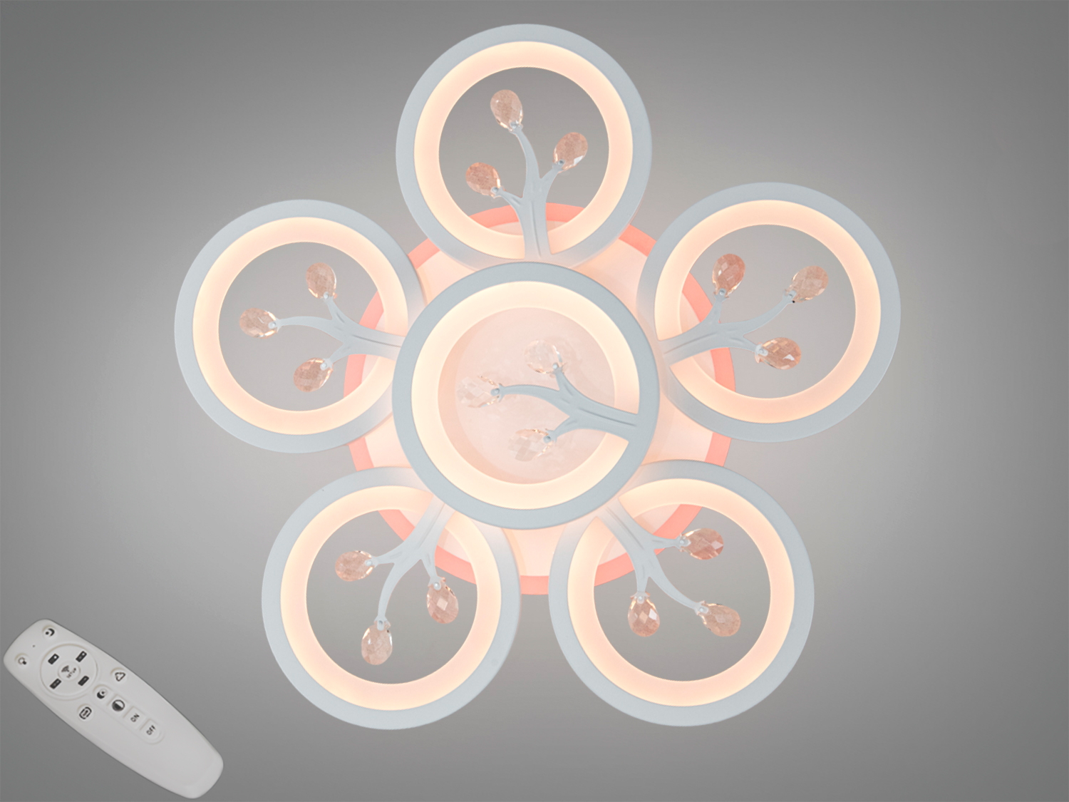 Стельова LED люстра біла 5+1 кільця 95 Вт RC