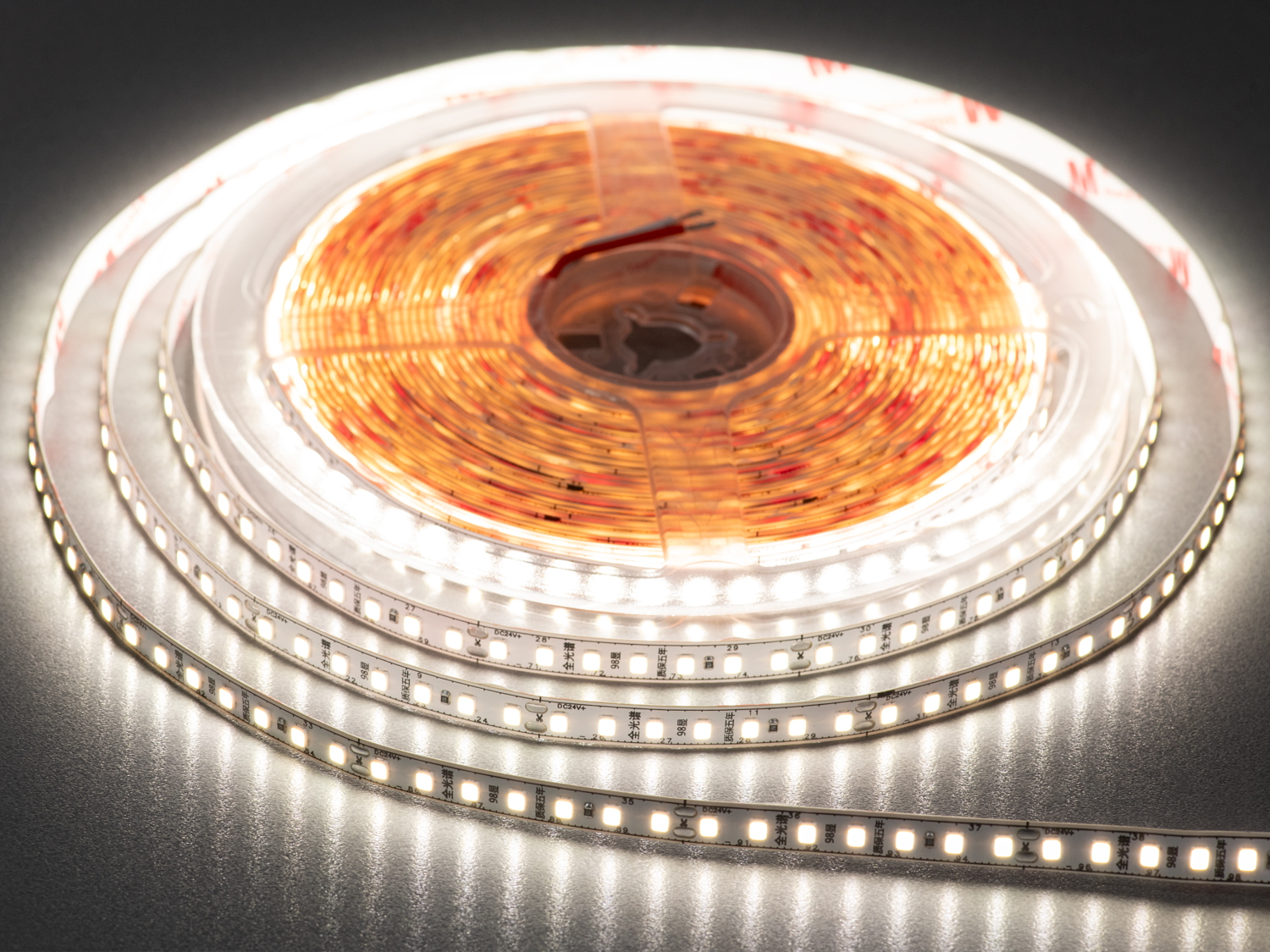 Завдяки живленню від 24V постійного струму, ця гнучка led стрічка для підсвічування чудово підходить для довгих ліній монтажу без падіння яскравості. Потужність 16 Вт/м забезпечує солідний запас яскравості.