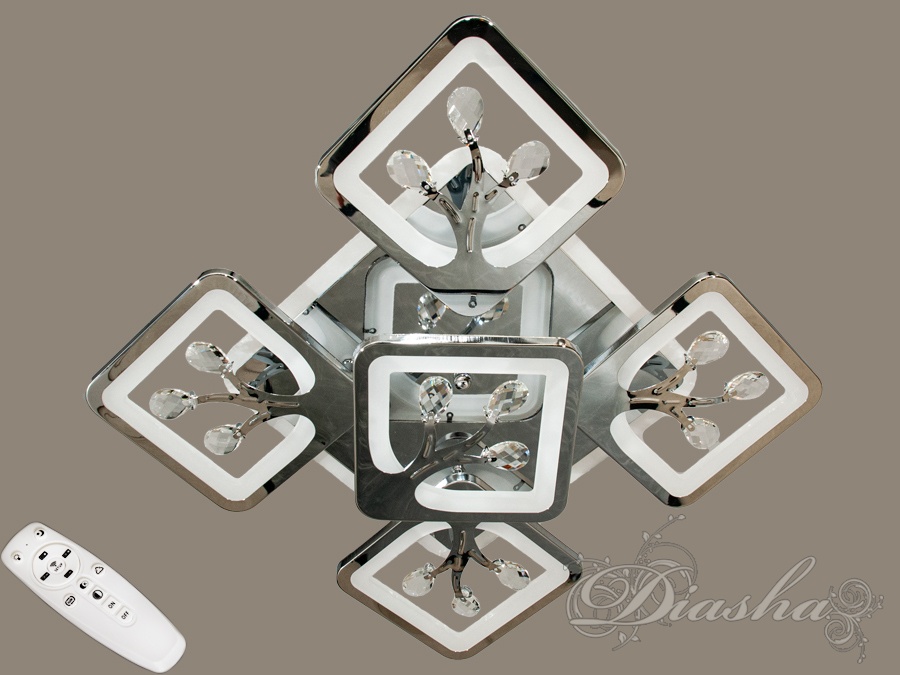 Декоративна люстра світлодіодна з пультом, підсвічуванням, 90W, хром