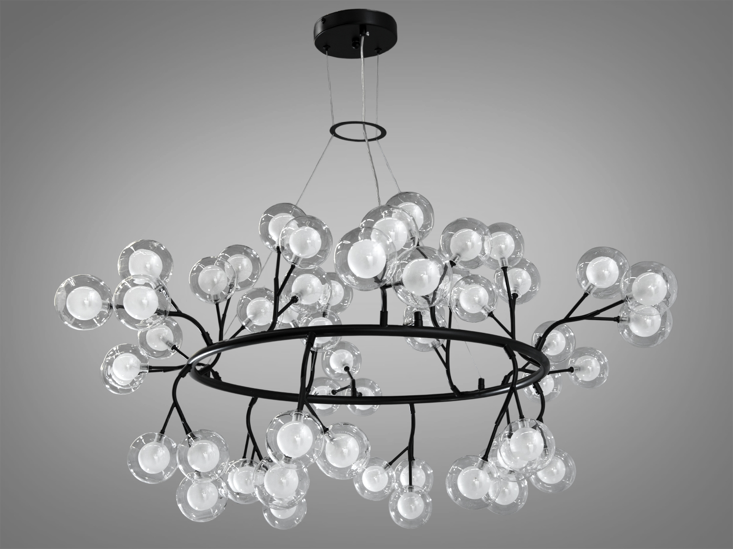 Стильна підвісна люстра в вітальню "Світлячок", 45 ламп, чорна
