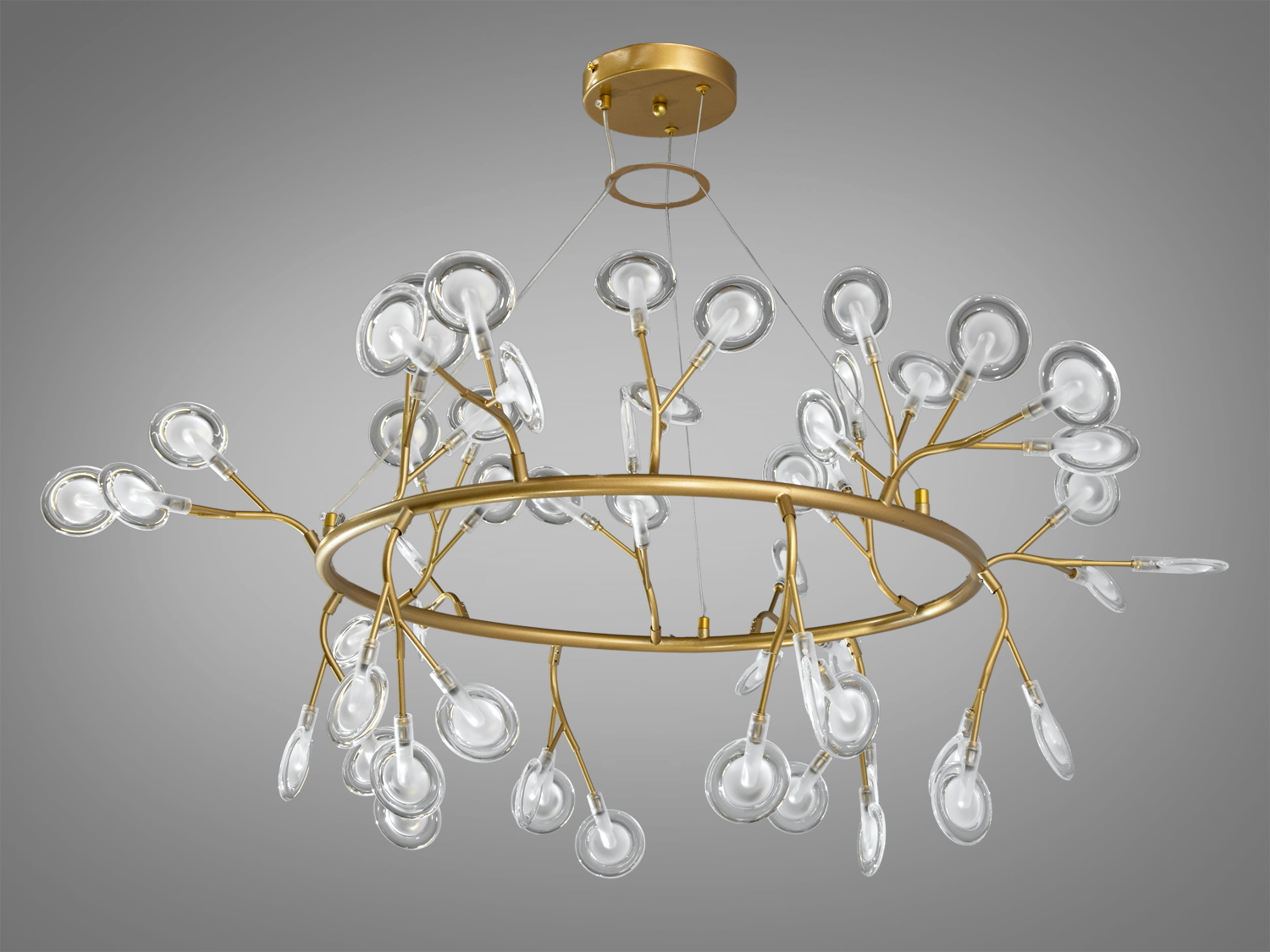 Унікальна підвісна люстра "Світлячок", 45 ламп, золото сатин
